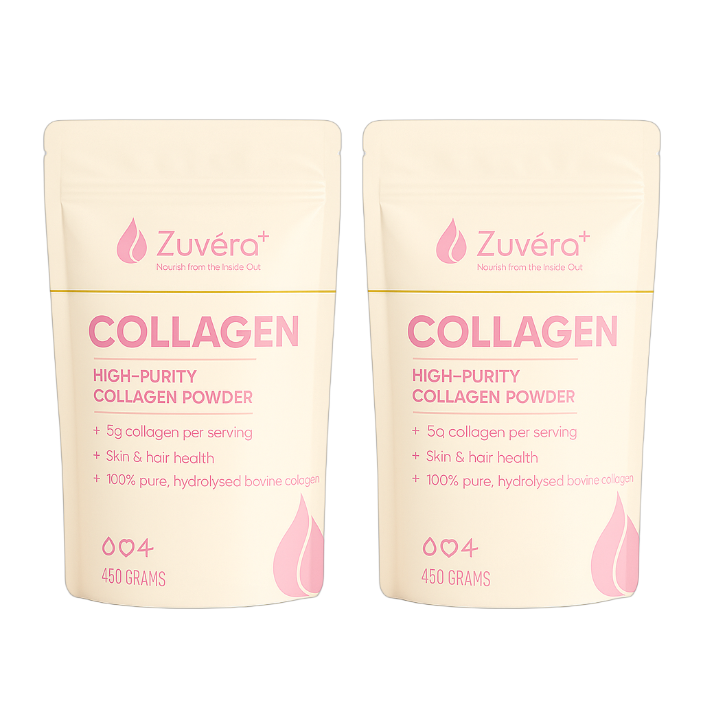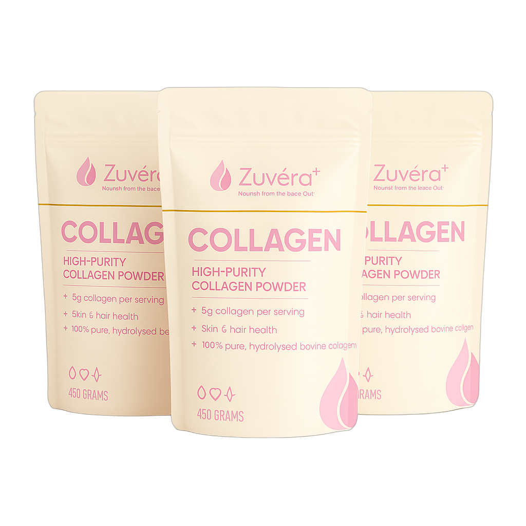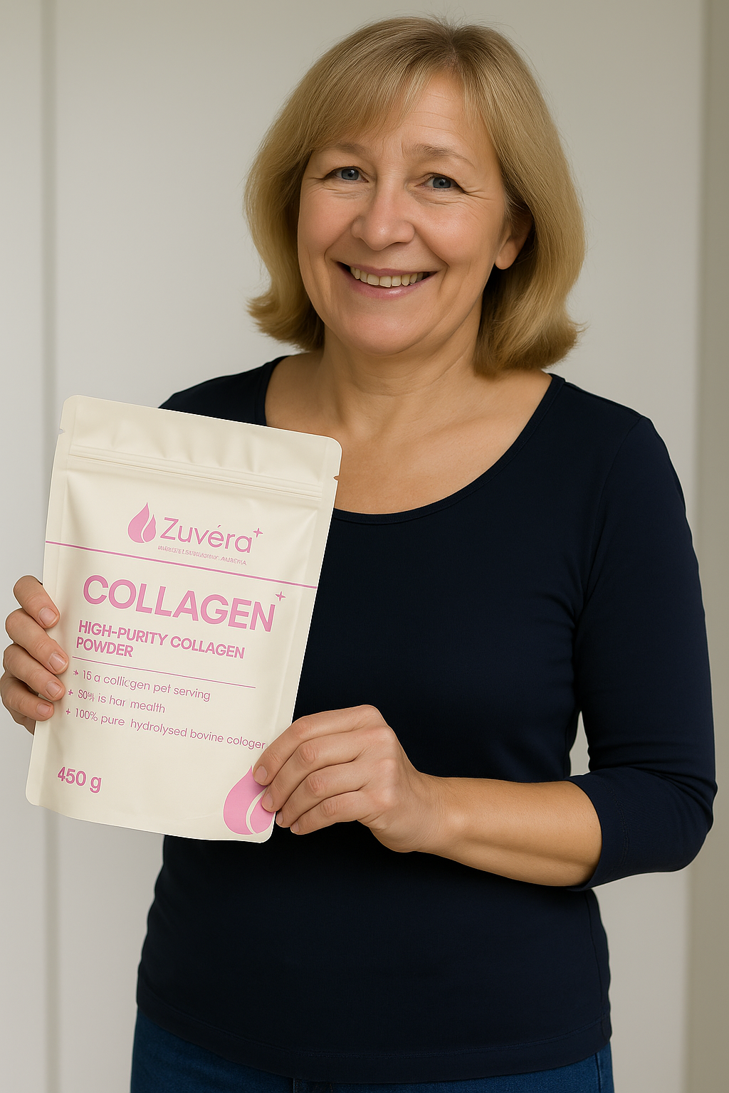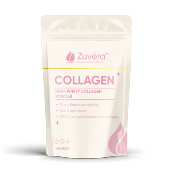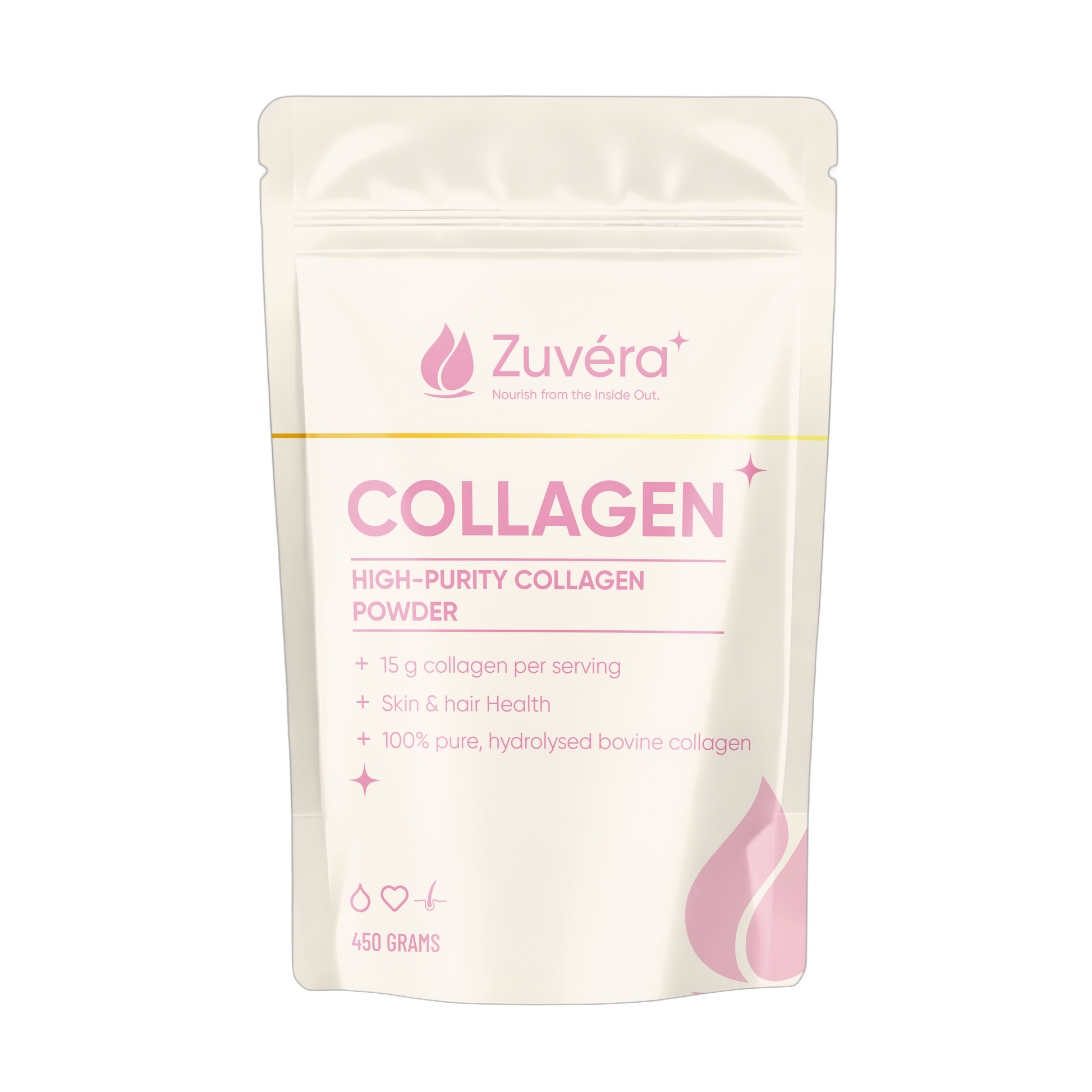 Zuvéra Collageen Poeder is een hoogwaardig, puur collageenpoeder dat jouw natuurlijke schoonheid van binnenuit ondersteunt. Het draagt bij aan een gezonde huid, sterk haar en stevige nagels.